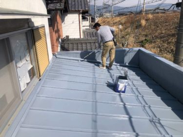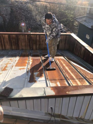 次に屋根自体が錆びないように錆止め用の塗料を塗っていきます。