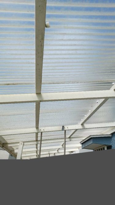 波板も劣化してきています。そこで、波板張替と躯体掃除をさせていただきました。