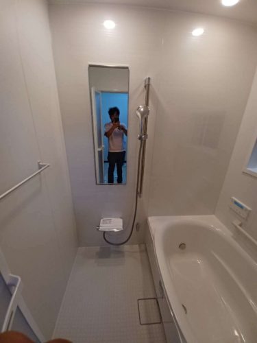 既存のお風呂の空間を最大に利用して組み立てたので、元々のお風呂よりも少し広くなっています(^_-)-☆