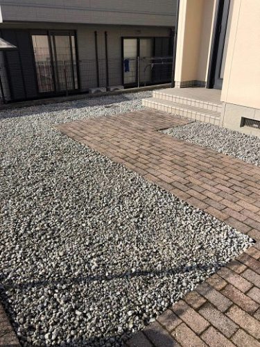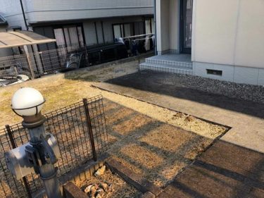 | お客様のご要望 | 雑草が生えてきているのと当初の芝がやせてきて見栄えが悪い。 雑草を生えないようにして、砂利できれいに仕上げたい。 |