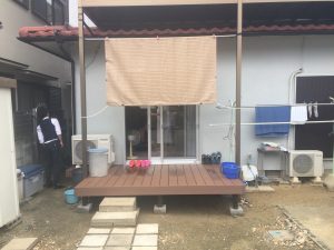 | 商品+工事代 | 840.000円 | 商品仕様 | サッシ入替、ウッドデッキ設置 サッシ:YKKap エピソードS シャッター付きサッシ ウッドデッキ: INOS モダンステージ76 |