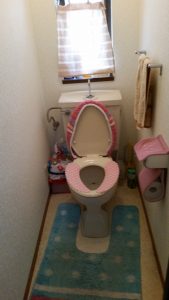 トイレ内に収納がないのでトイレットペーパーなどのストックが丸見えに