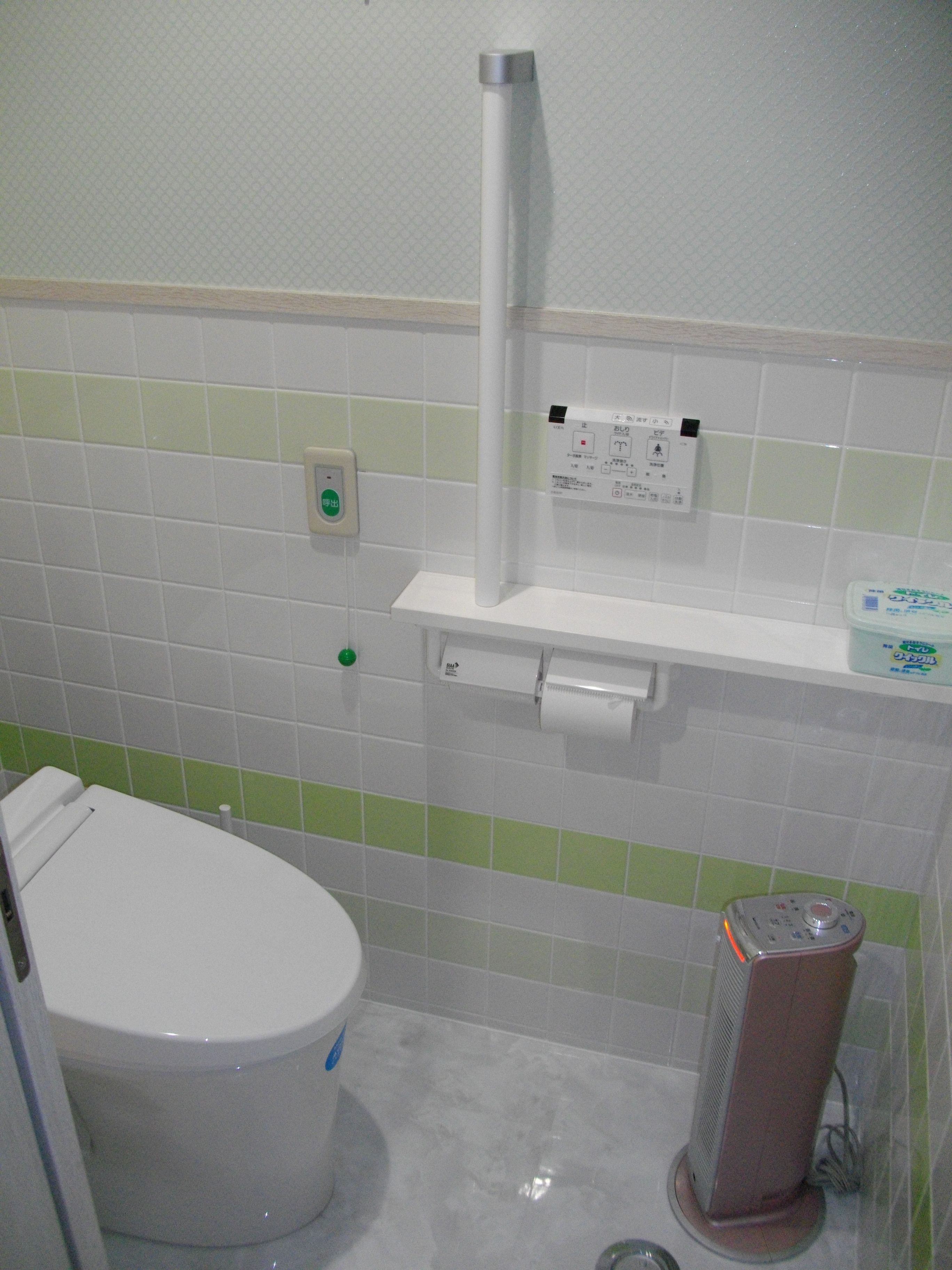 白を基調に病院のカラーであるグリーンを取り入れさわやかなトイレに仕上がりました。